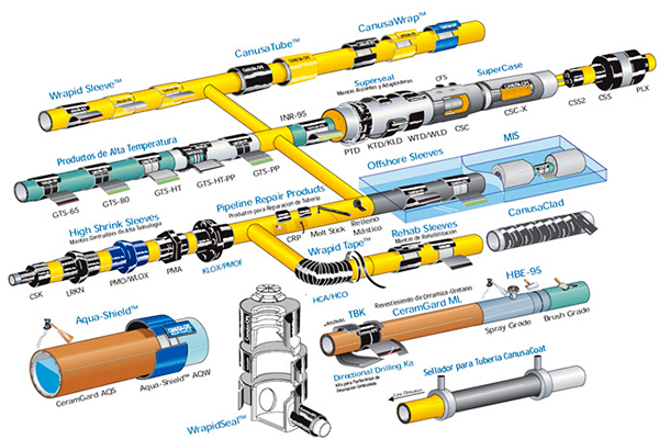 Protección anticorrosiva y mecánica para juntas soldadas en tubería de acero al carbón. Las mangas termocontráctiles CANUSA pueden ser utilizadas en tubería desde 2″ de diam. Hasta 90″ de Diam.
