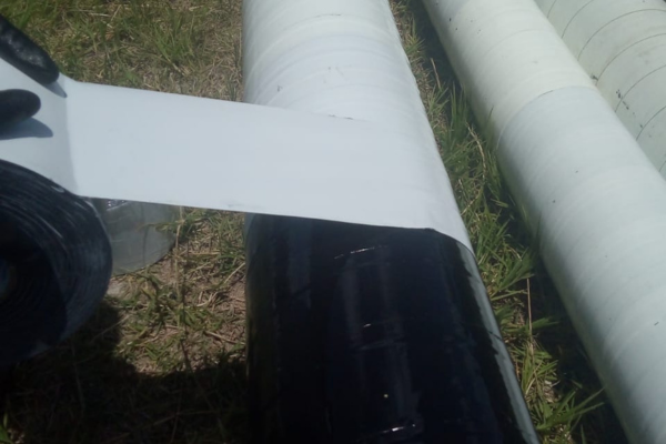 Sistema de protección anticorrosiva y mecánica para tuberías de acero al carbón enterrada. A base de cintas de polietileno y adhesivo de hule butilo.