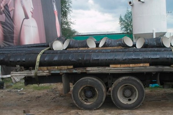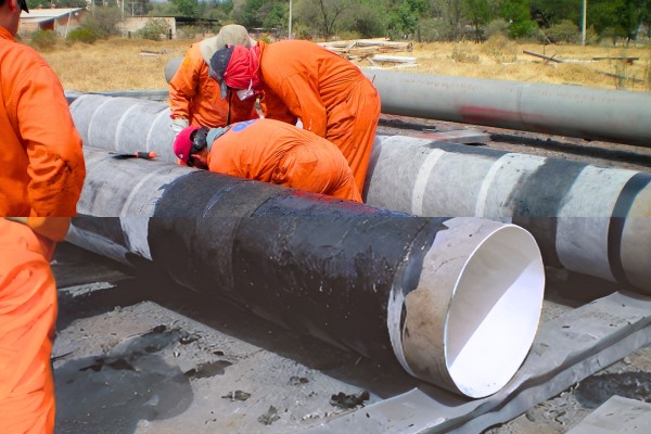 Protección anticorrosiva y mecánica para tuberías de acero al carbón enterrada, a base de esmalte de brea de hulla, de aplicación en caliente y mallas de refuerzo de fibra de vidrio.